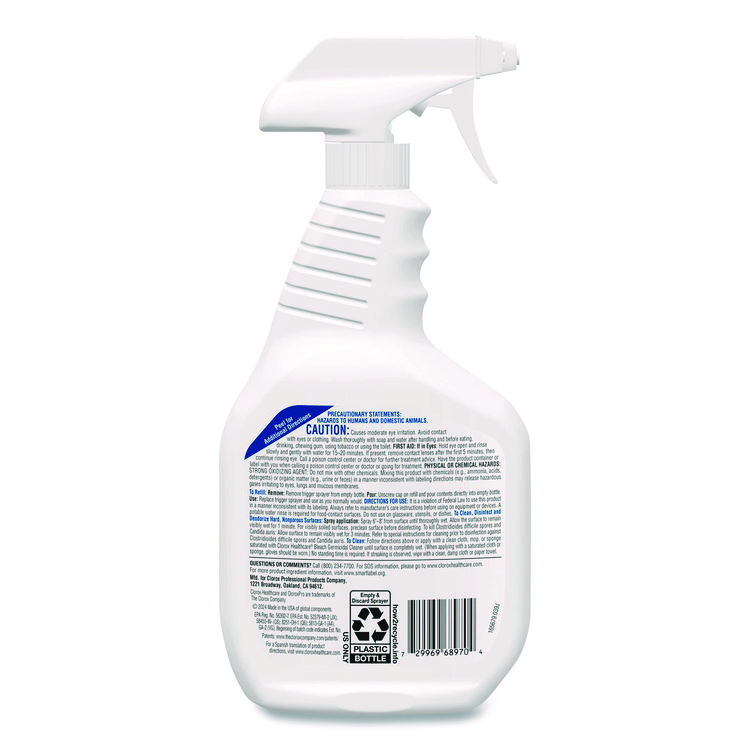 Clorox Healthcare Bleach Germicidal Cleaner, 32 oz Spray Bottle (CLO68970EA)