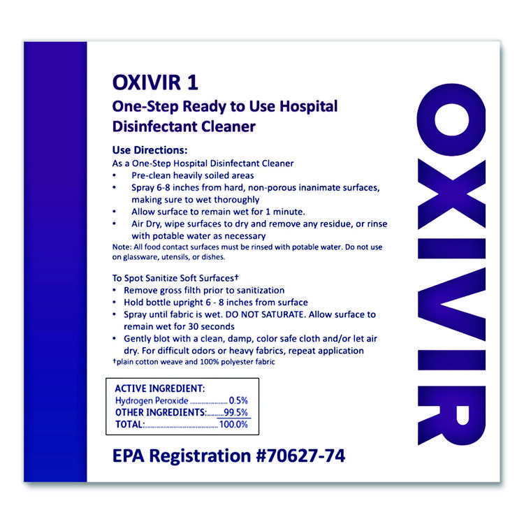 Diversey Oxivir 1 RTU Disinfectant Cleaner, 32 oz Spray Bottle, 12/Carton (DVO100850916)