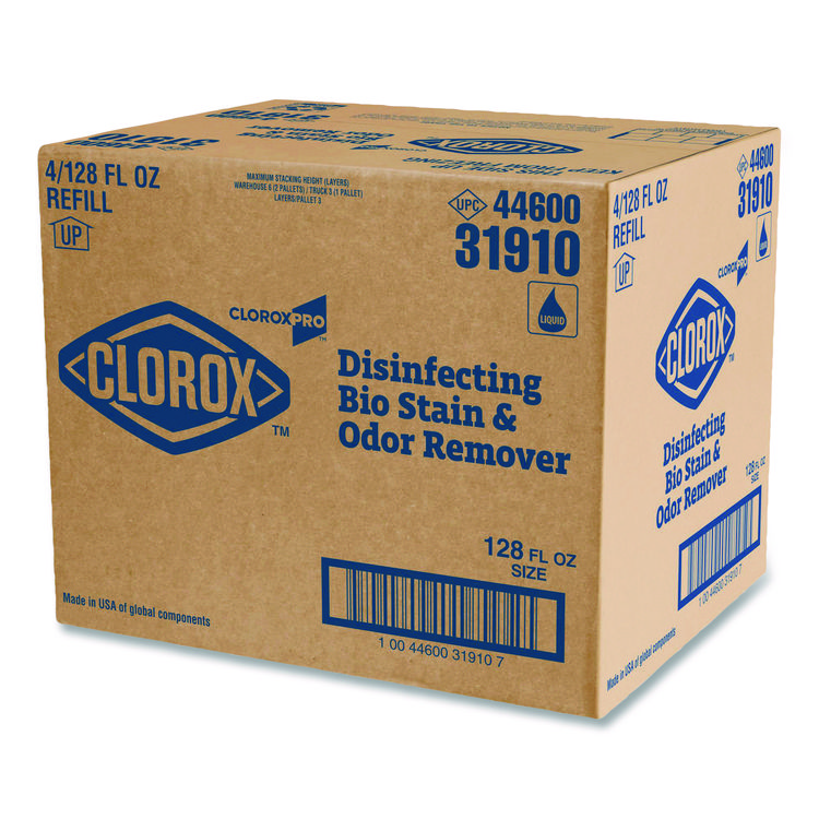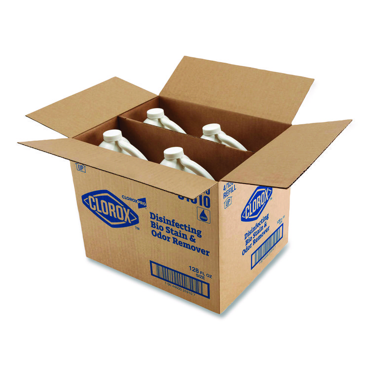 Clorox Disinfecting Bio Stain and Odor Remover, Fragranced, 128 oz Refill Bottle, 4/Carton (CLO31910)