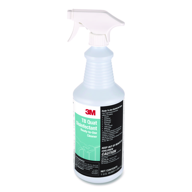 3M TB Quat Disinfectant Ready-to-Use Cleaner, 32 oz Bottle, 12 Bottles and 2 Spray Triggers/Carton (MMM29612)