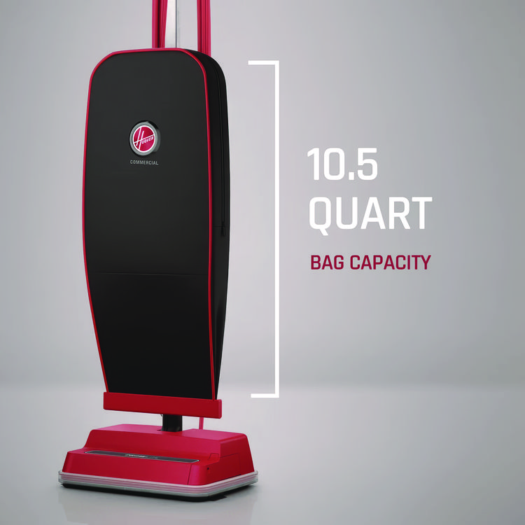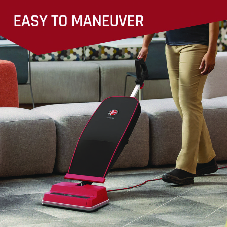 Hoover Commercial Task Vac Soft Bag Lightweight Upright, 12″ Cleaning Path, Black/Red (HVRCH50300)