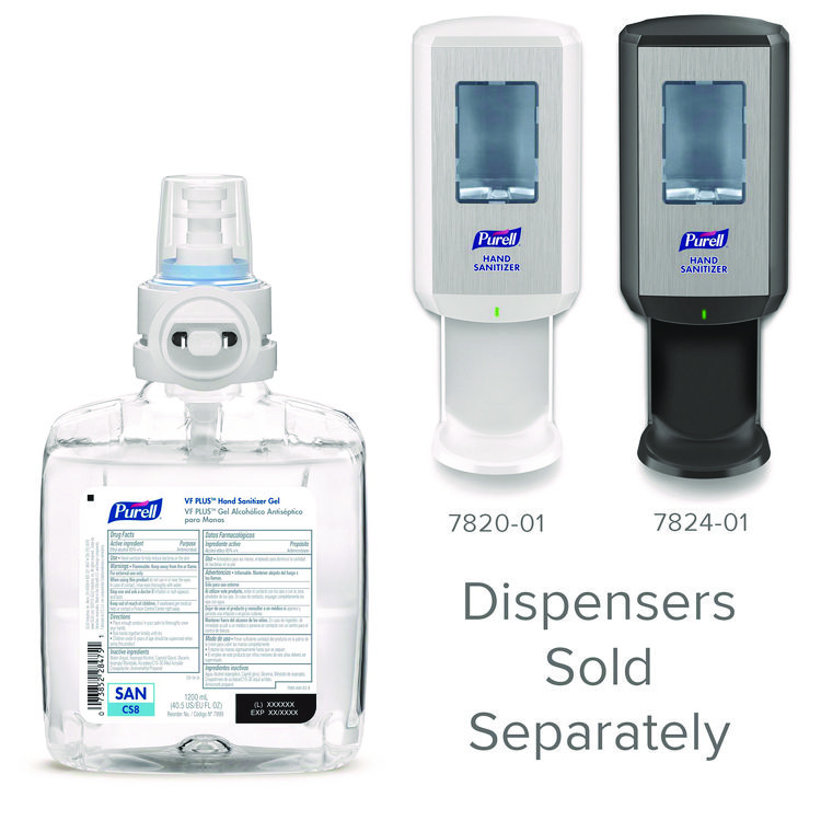 PURELL VF PLUS Hand Sanitizer Gel, 1,200 mL Refill Bottle, Fragrance-Free, For CS8 Dispensers, 2/Carton (GOJ789902CT)