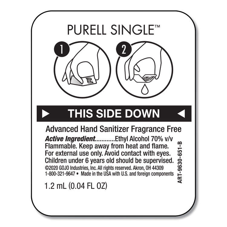 PURELL Advanced Hand Sanitizer Single Use, Gel, 1.2 mL, Packet, Fragrance-Free, 2,000/Carton (GOJ96302MNS)