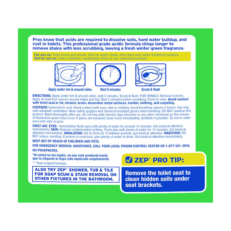Zep Acidic Toilet Bowl Cleaner, Mint, 32 oz Bottle, 12/Carton (ZPEZUATBC32)