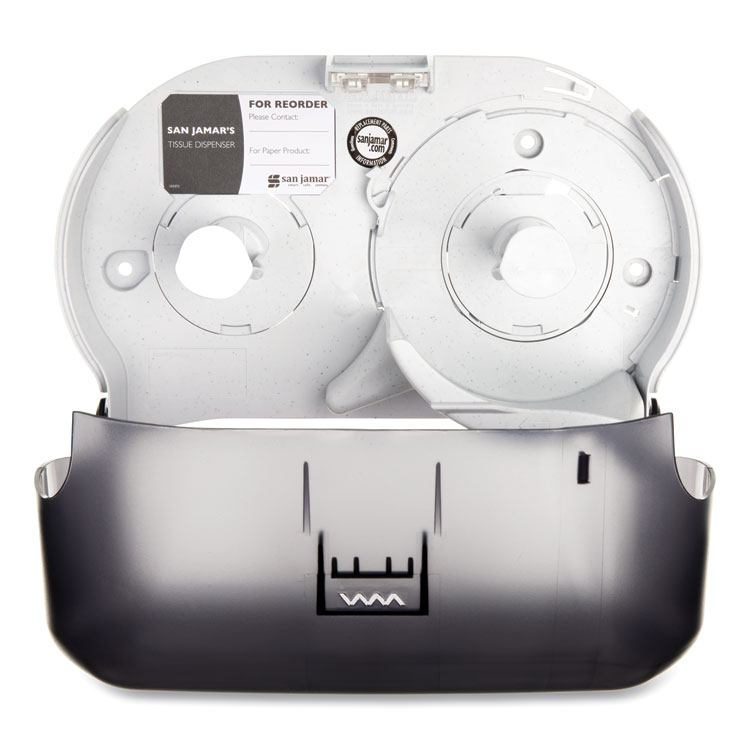 San Jamar Twin 9″ Jumbo BathTissue Dispenser, Classic, 19 x 5.25 x 12, Transparent Black Pearl (SJMR4000TBK)