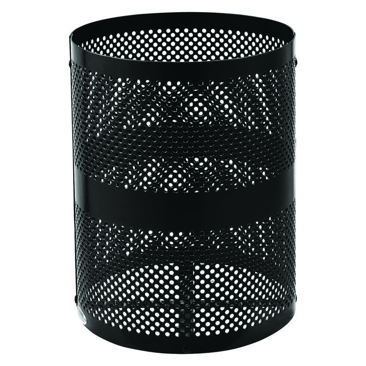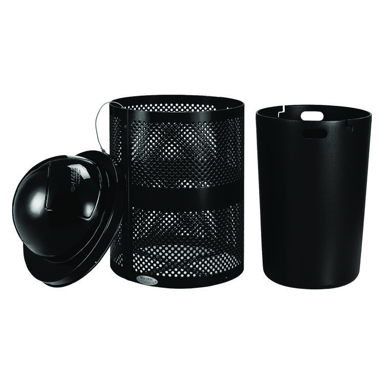 Global Industrial Outdoor Perforated Steel Trash Can with Dome Lid, 36 gal, Steel, Black (GBE261949BK)