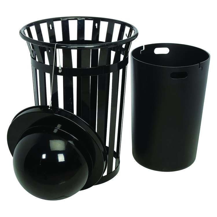 Global Industrial Outdoor Slatted Steel Trash Can, Dome Lid, 36 gal, Black (GBE261944BK)