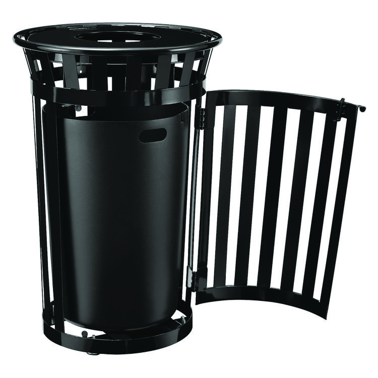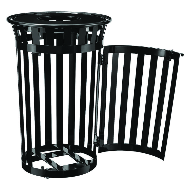 Global Industrial Outdoor Slatted Steel Trash Can, With Access Door, 36 gal, Steel Black (GBE261940BK)