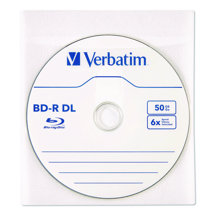 Verbatim CD/DVD Sleeves, 1 Disc Capacity, Clear/White, 100/Box (VER49976)