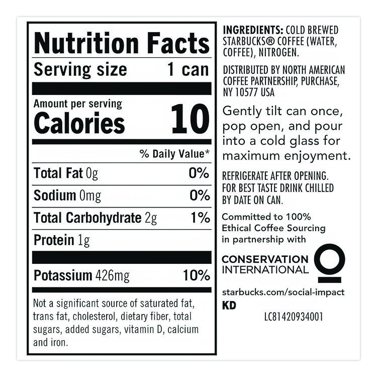 Starbucks Nitro Cold Brew Coffee, Black Unsweetened, 9.6 oz Can, 12/Carton (SBKPEP19286)