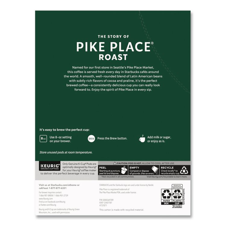 Starbucks Whole Bean Coffee, Pike Place Roast, 1 lb Bag, 6/Carton (SBK11017854CT)