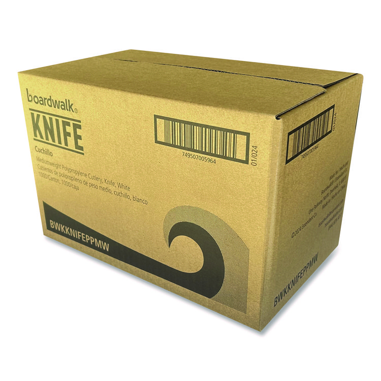 Boardwalk Mediumweight Polypropylene Cutlery, Knife, 5.86″, Plastic, White, 1,000/Carton (BWKKNIFEPPMW)
