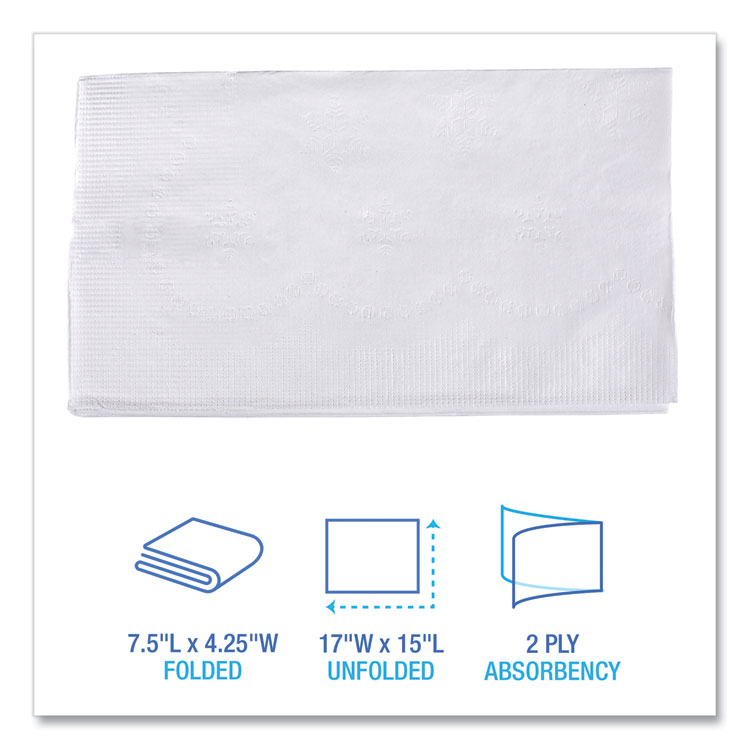 Boardwalk 1/8-Fold Dinner Napkins, 2-Ply, 15 x 17, White, 300/Pack, 10 Packs/Carton (BWK8321W)