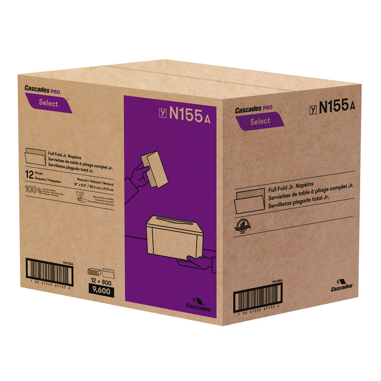 Cascades PRO Select Full Fold II Napkins, 1-Ply, 12 x 8.5, White, 800/Pack, 12 Packs/Carton (CSDN155)