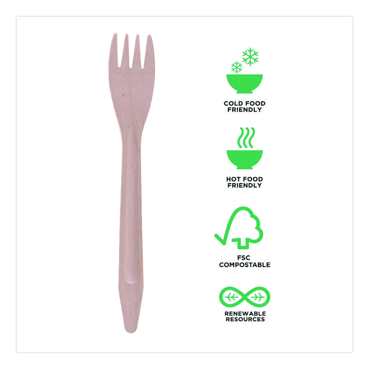 Eco-Products Wood Cutlery, General Purpose Fork, Natural, 500/Carton (ECOEPS212W)