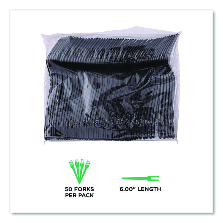 Eco-Products 100% Recycled Content Cutlery, Fork, Plastic, Black, 50/Pack, 20 Packs/Carton (ECOEPS112)