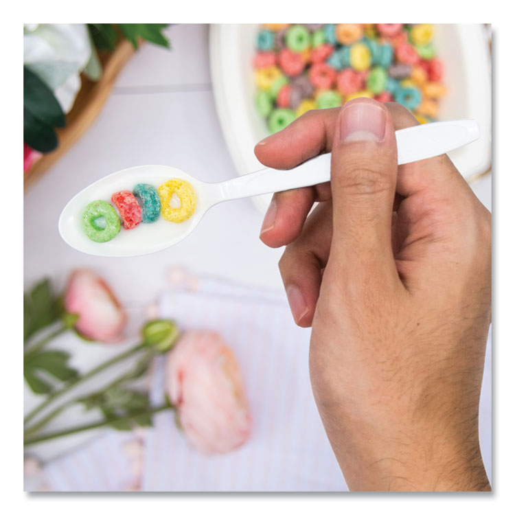 SOLO Regal Mediumweight Cutlery, Full-Size, Spoon, Plastic, White, 1,000/Carton (SCCS6SW)