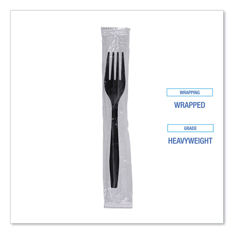 Boardwalk Heavyweight Wrapped Polypropylene Cutlery, Fork, Plastic, Black, 1,000/Carton (BWKFORKHWPPBIW)