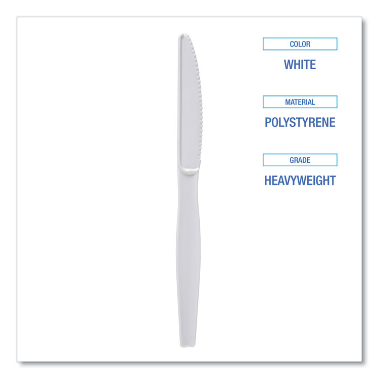 Boardwalk Heavyweight Polystyrene Cutlery, Knife, Plastic, White, 1,000/Carton (BWKKNIFEHW)