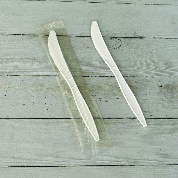 World Centric TPLA Compostable Cutlery, Knife, Plastic, White, 750/Carton (WORKNPSI)