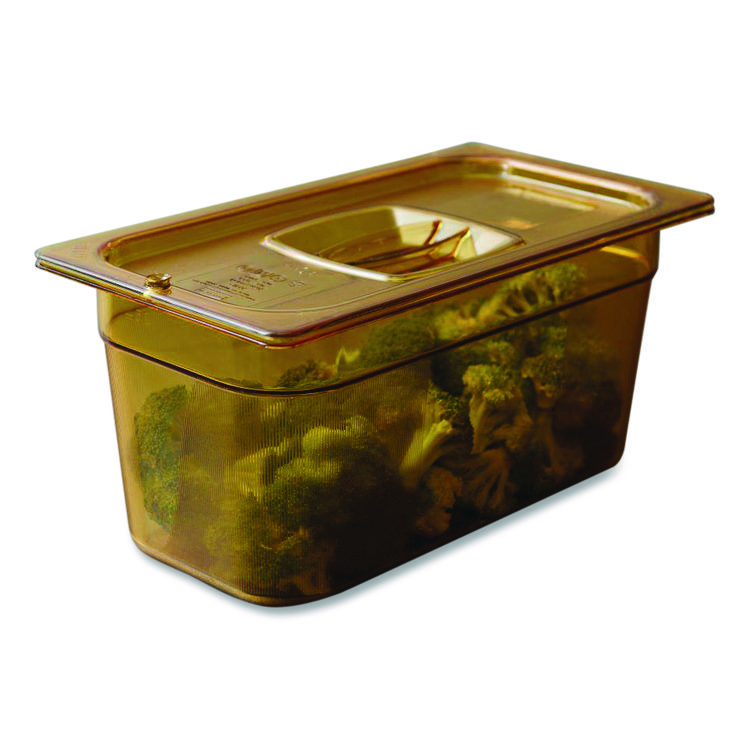 Rubbermaid Commercial Insert Pan Handled Notched Cover, 6.38 x 0.39 x 10.38, Amber, Plastic, 6/Carton (RCP214P86AMB)