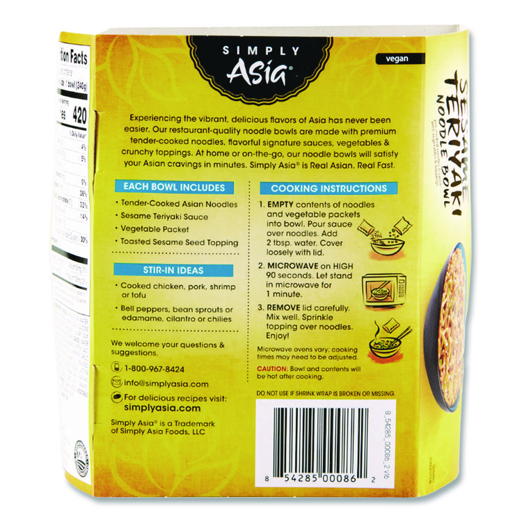 McCormick Simply Asia Sesame Teriyaki Noodle Bowl, 8.5 oz, 6/Carton (MKCTHA00086)