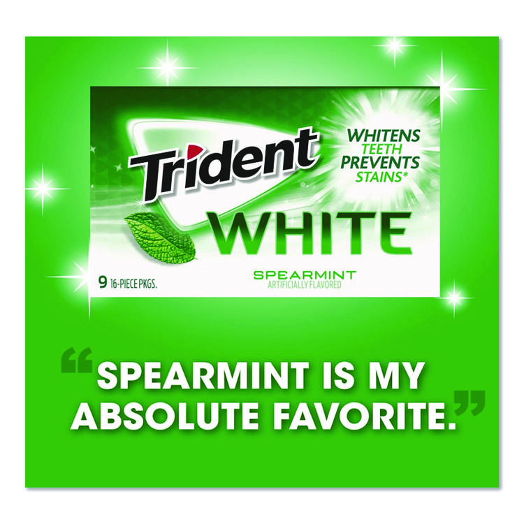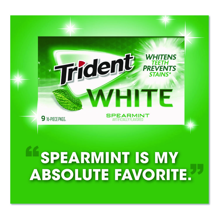 Trident Sugar-Free Gum, White Spearmint, 16 Sticks/Pack, 9 Packs/Box (CDBAMC67610)