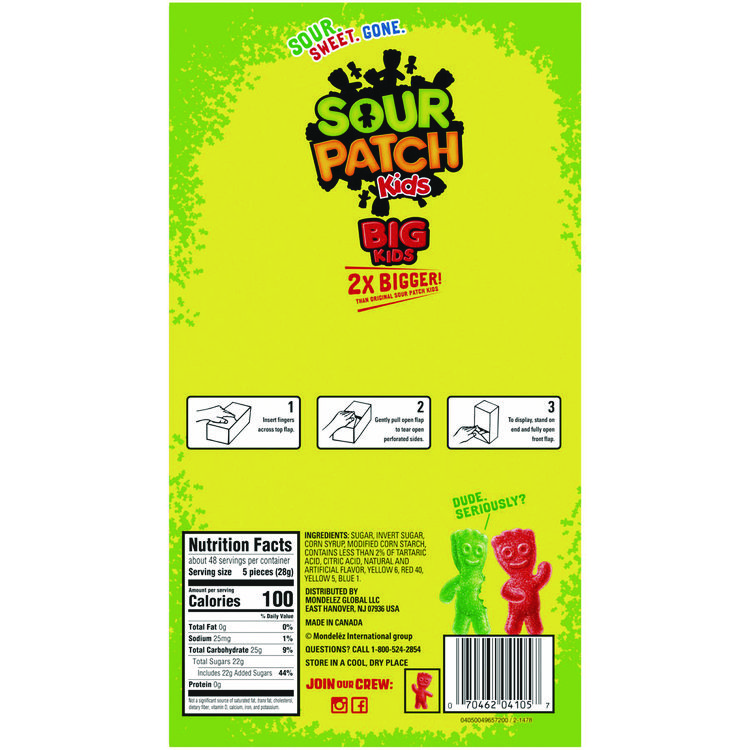 Sour Patch Kids Fruit Flavored Candy, Grab-and-Go, 240-Pieces/Box (CDB43147)
