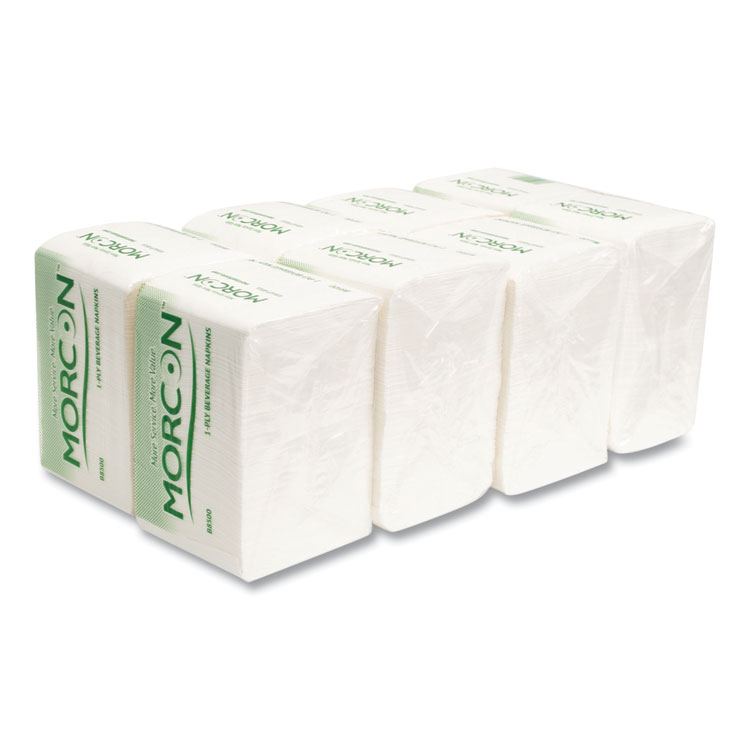 Morcon Tissue Morsoft Beverage Napkins, 9 x 9/4, White, 500/Pack, 8 Packs/Carton (MORB8500)