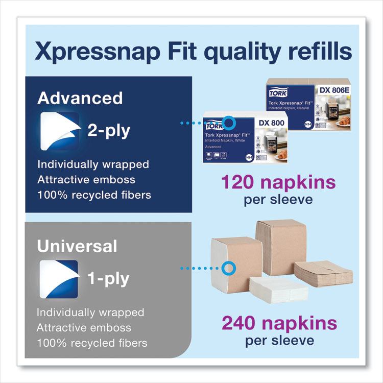 Tork Xpressnap Fit Interfold Dispenser Napkins, 2-Ply, 6.5 x 8.39, White, 120/Pack, 36 Packs/Carton (TRKDX800)