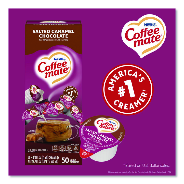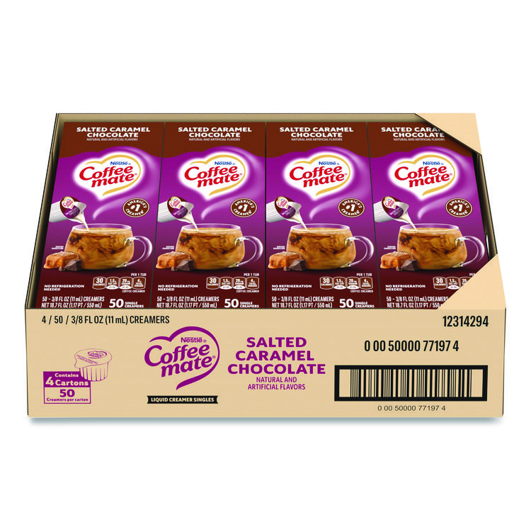 Coffee mate Liquid Coffee Creamer, Salted Caramel Chocolate, 0.38 oz Mini Cups, 50/Box (NES77197)