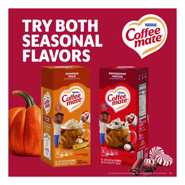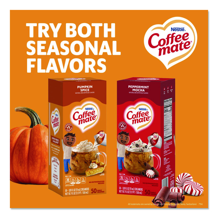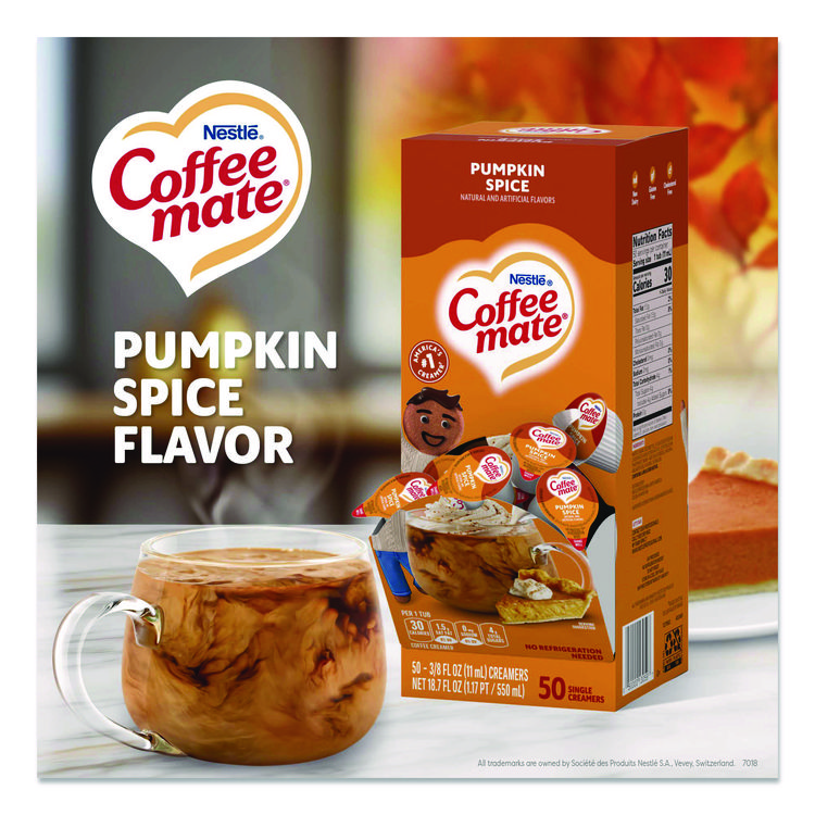 Coffee mate Liquid Coffee Creamer, Pumpkin Spice, 0.38 oz Mini Cups, 50/Box, 4 Boxes/Carton (NES75520CT)