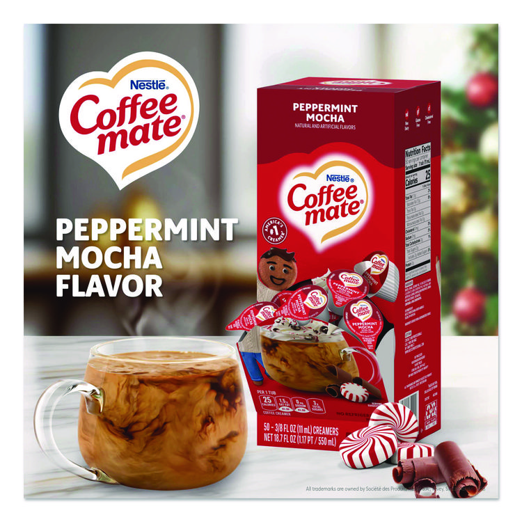 Coffee mate Liquid Coffee Creamer, Peppermint Mocha, 0.38 oz Mini Cups, 50/Box (NES76060)