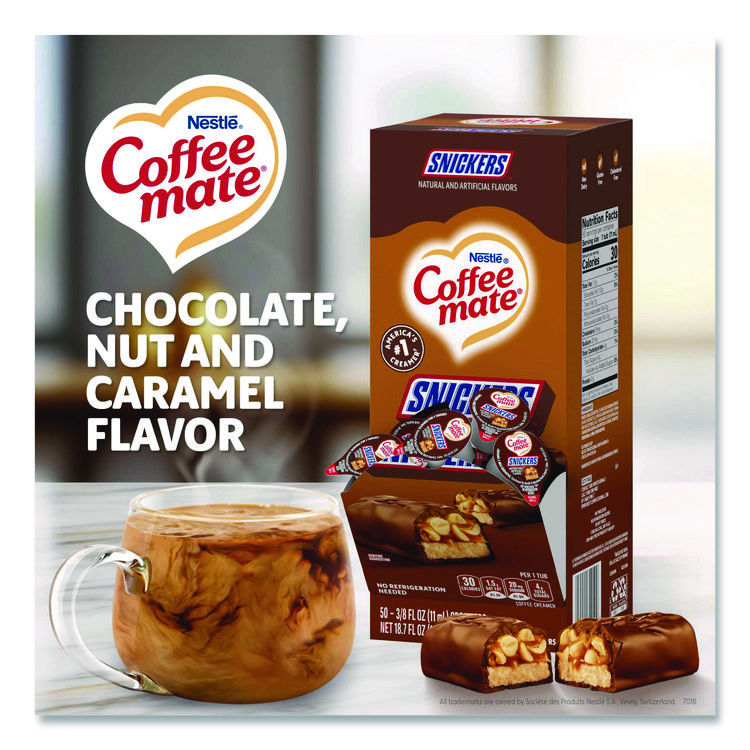 Coffee mate Liquid Coffee Creamer, Snickers, 0.38 oz Mini Cups, 50/Box (NES61425BX)
