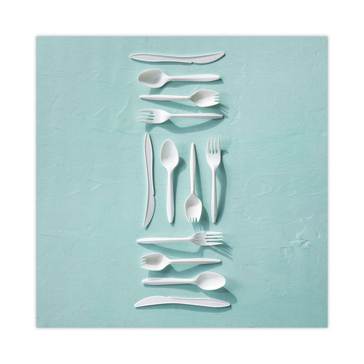 Pactiv Evergreen Fieldware Cutlery, Mediumweight Spork, Plastic, White, 1,000/Carton (PCTYFWQWCH)