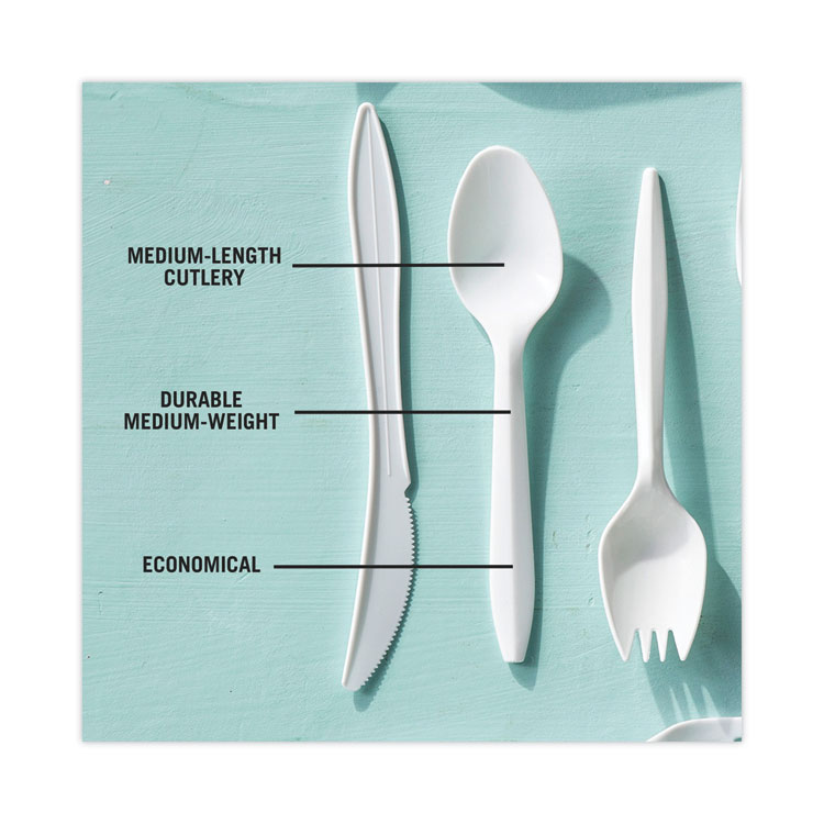 Pactiv Evergreen Fieldware Cutlery, Mediumweight Spoon, Plastic, White, 1,000/Carton (PCTYFWSWCH)