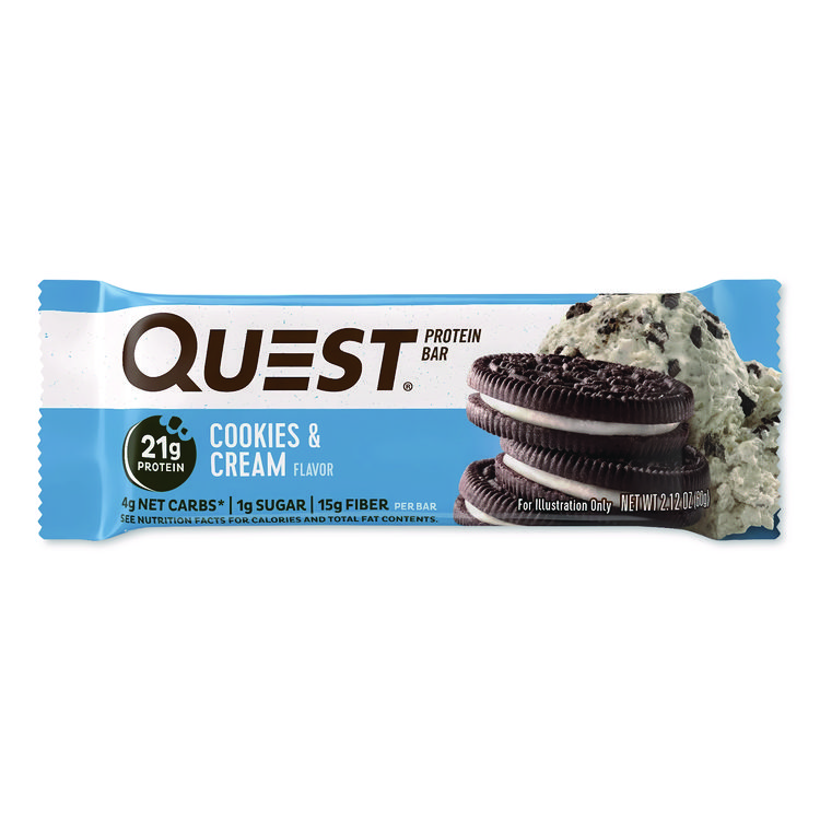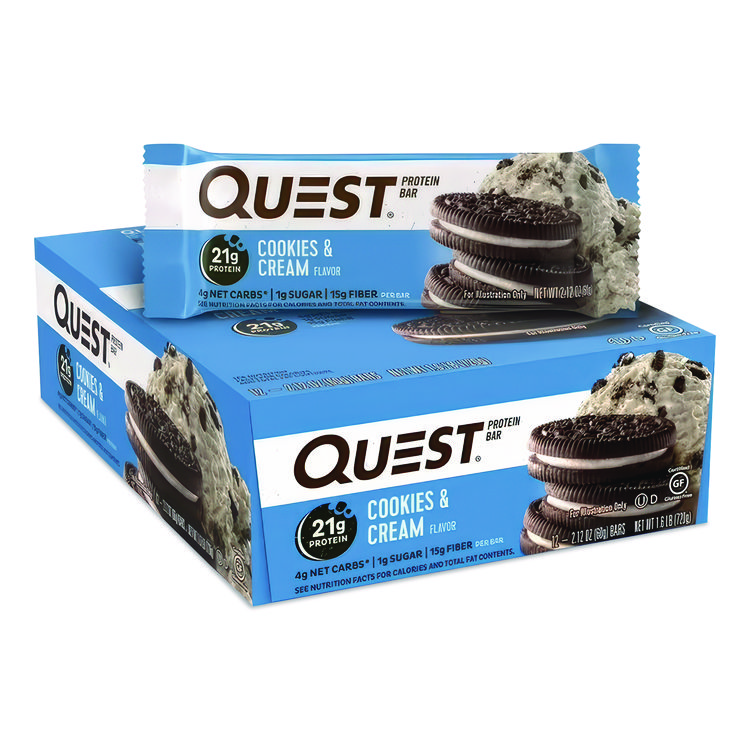 Quest Protein Bars, Cookies and Cream, 2.12 oz Bar, 12 Bars/Box (QCC00018)