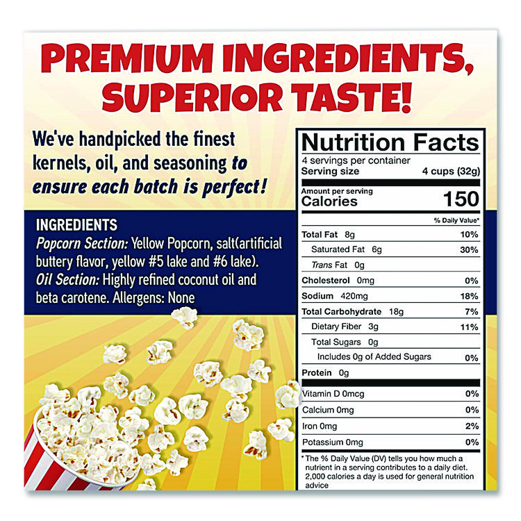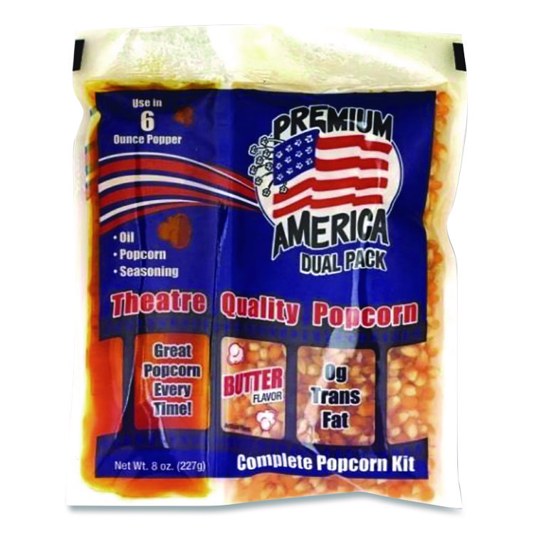 Great Western Products Premium America Popcorn, Butter, 8 oz Pack, 36/Carton (GWEGRE00016)