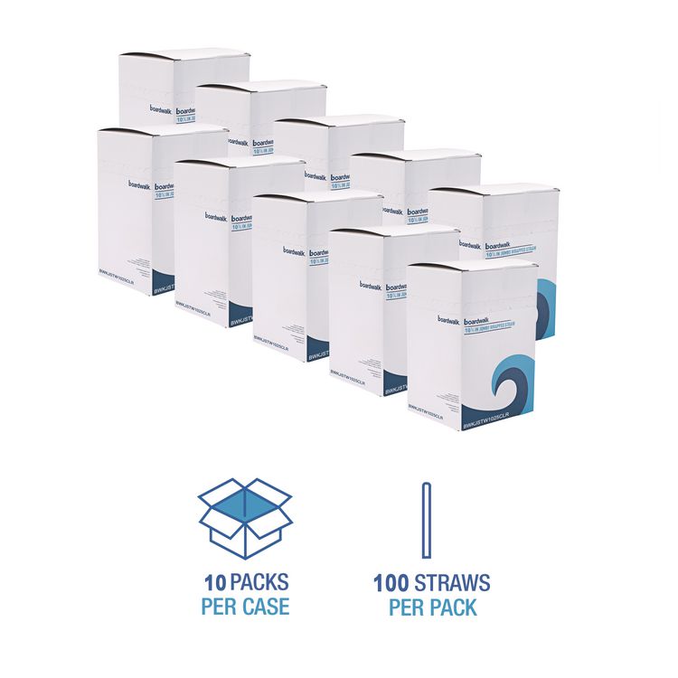 Boardwalk Wrapped Giant Straws, 10.25″, Polypropylene, Clear, 100/Pack, 10 Packs/Carton (BWKJSTW1025CLR)