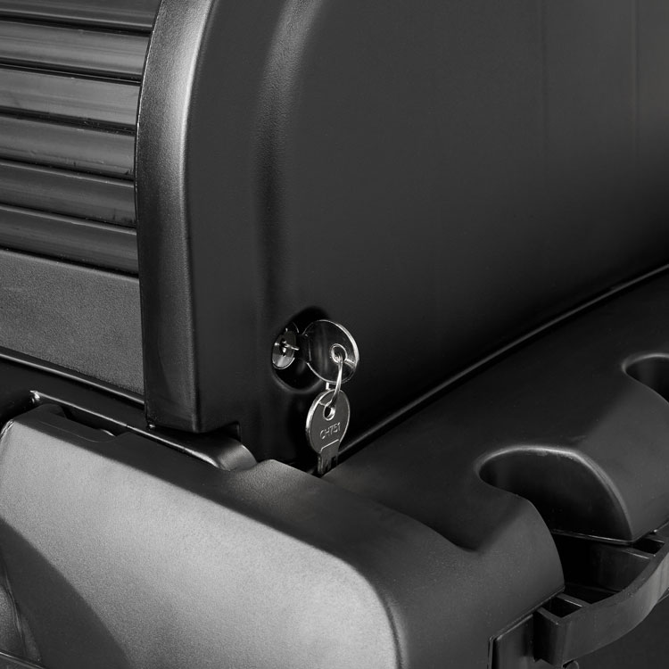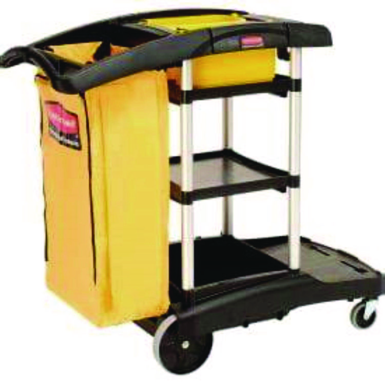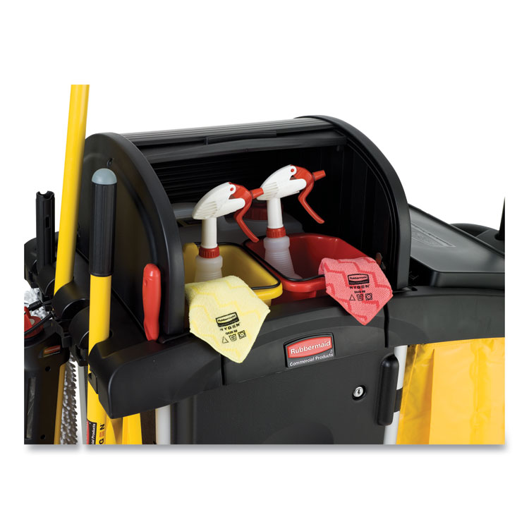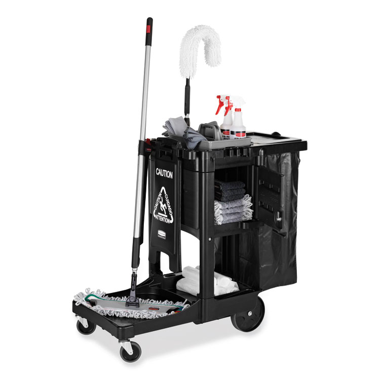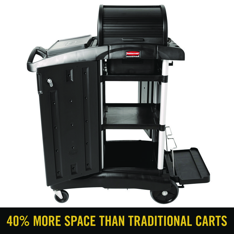 Rubbermaid Commercial Executive High Security Janitorial Cleaning Cart, Plastic, 4 Shelves, 1 Bin, 23.1″ x 39.6″ x 27.5″, Black (RCP1861427)