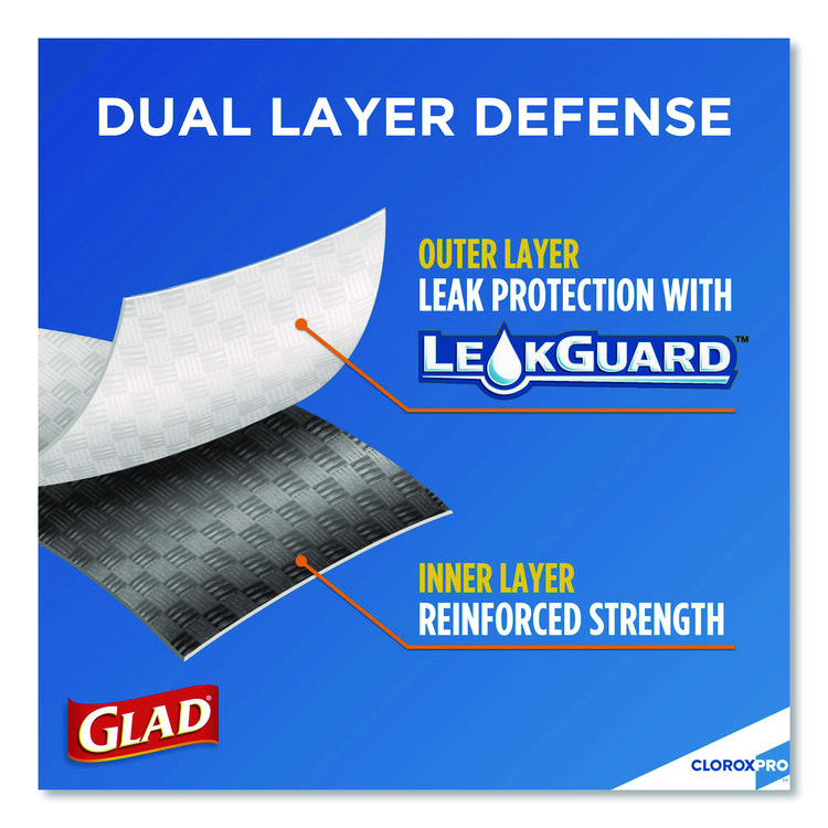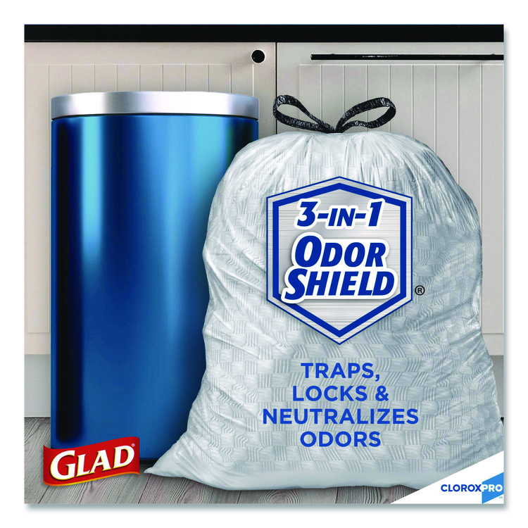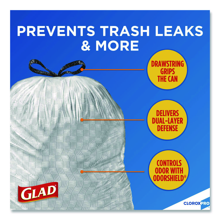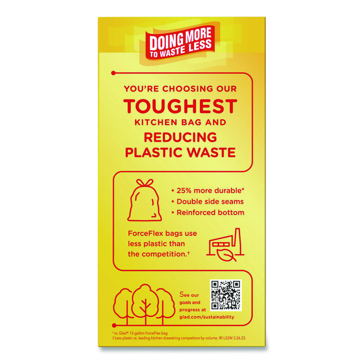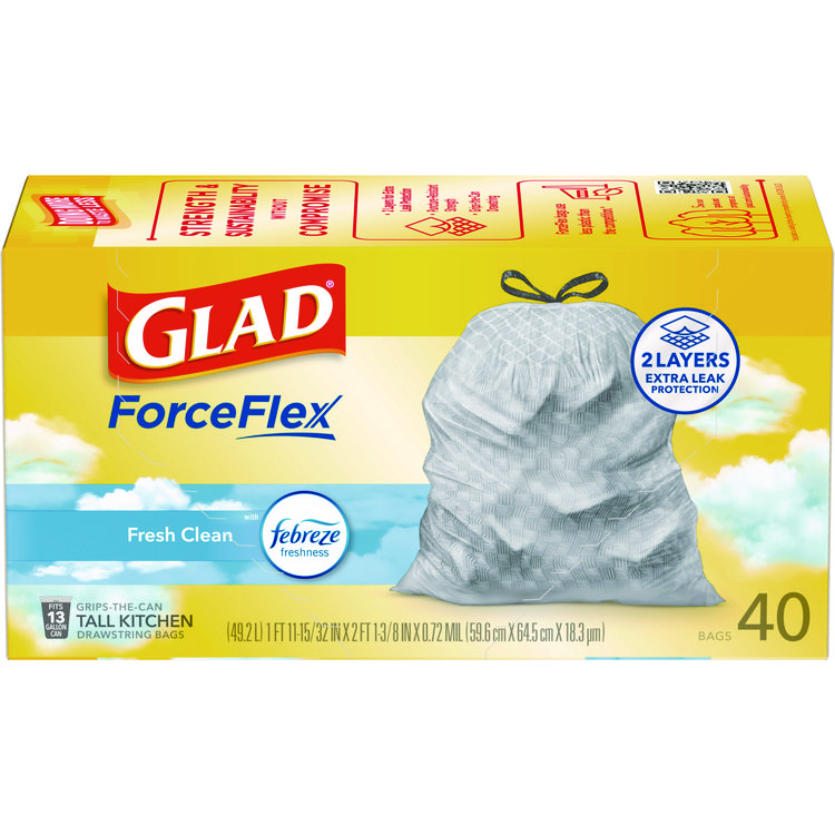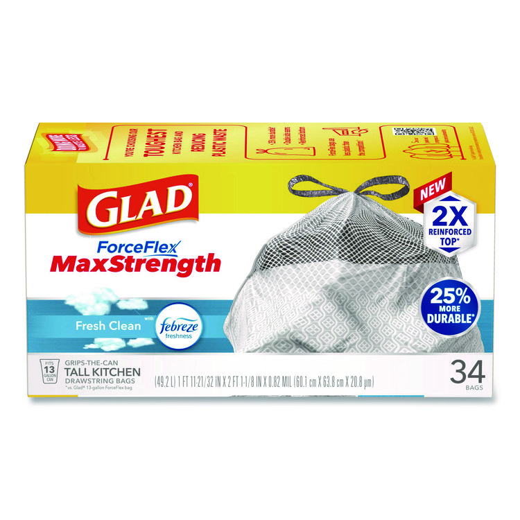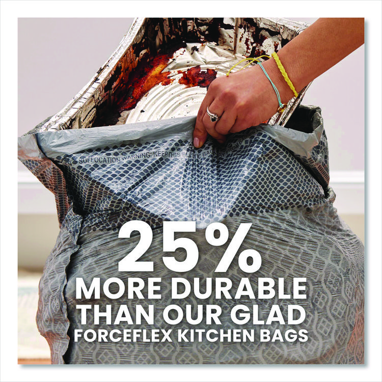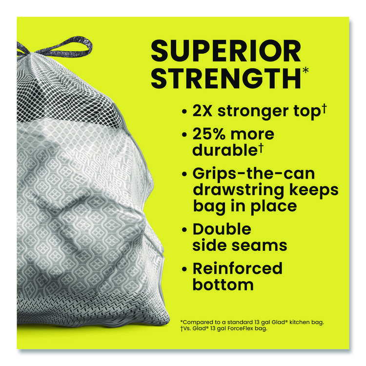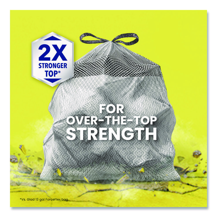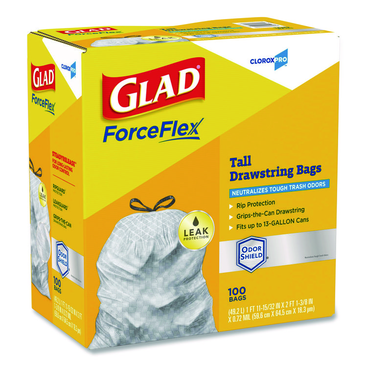 Glad CloroxPro ForceFlex Tall Kitchen Drawstring Trash Bags, 13 gal, 23.75 x 24.88, Gray, 100/Box (CLO70427)