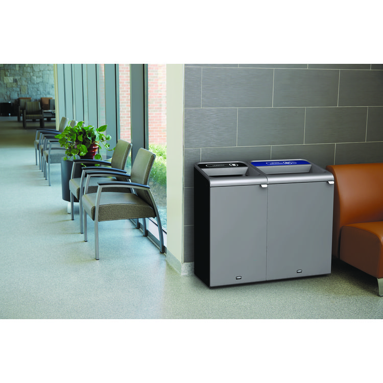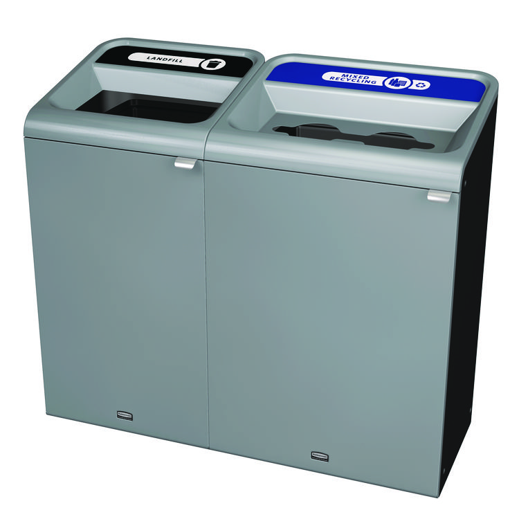 Rubbermaid Commercial Configure Indoor Recycling Waste Receptacle, Mixed Recycling, 33 gal, Metal, Gray (RCP1961629)