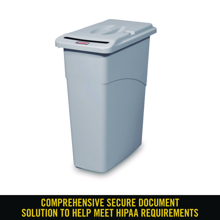 Rubbermaid Commercial Slim Jim Confidential Document Waste Receptacle with Lid, 23 gal, Light Gray (RCP9W15LGY)