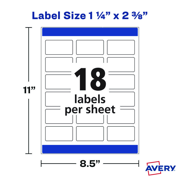 Avery White Dissolvable Labels w/ Sure Feed, 1.25 x 2.38, White, 90/PK (AVE4224)