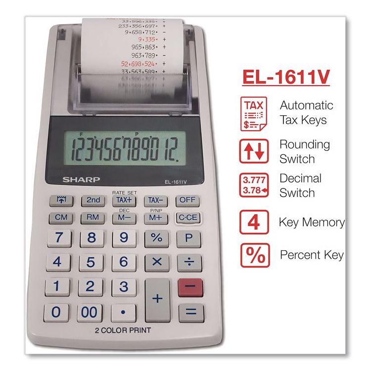 Sharp EL-1611V Printing Calculator, Black/Red Print, 2 Lines/Sec (SHREL1611V)