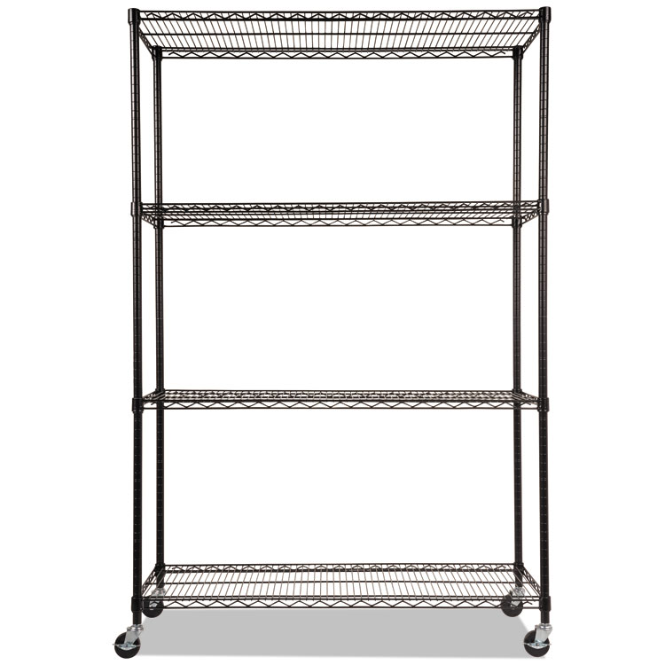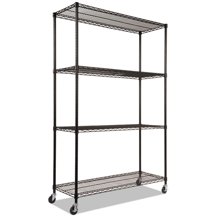 Alera NSF Certified 4-Shelf Wire Shelving Kit with Casters, 48w x 18d x 72h, Black (ALESW604818BL)