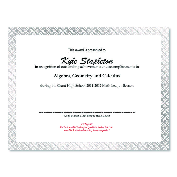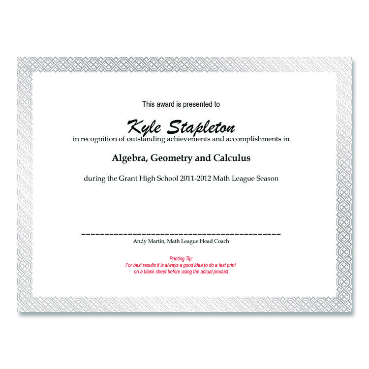 Great Papers! Foil Border Certificates, 8.5 x 11, White/Silver with Braided Silver Border,15/Pack (COS963027)