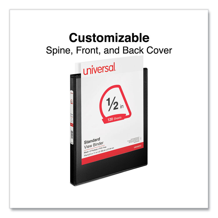 Universal Slant D-Ring View Binder, 3 Rings, 0.5″ Capacity, 11 x 8.5, Black (UNV20701)