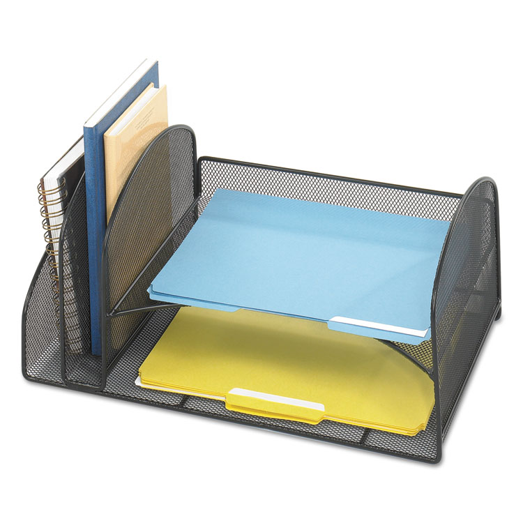 Safco Onyx Mesh Desk Organizer, Three Sections/Two Baskets, Steel Mesh, 17 x 6.75 x 7.75, Black (SAF3263BL)