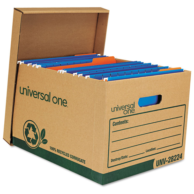 Universal Recycled Medium-Duty Record Storage Box, Letter/Legal Files, Kraft/Green, 12/Carton (UNV28223)